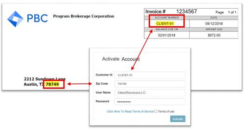 Confirm that your Customer ID and Zip Code match your most recent PBC invoice.